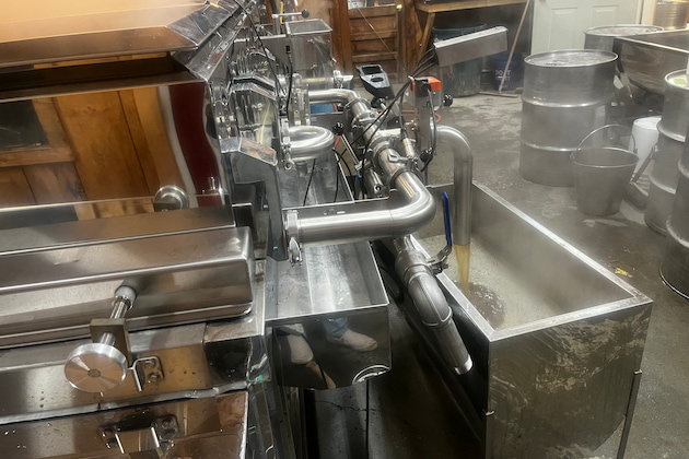 Sugarmaker Steve Fleury, with wife, Betsy, of Fleury's Maple Hill Farm in Richford, Vt., checks syrup density at the sugarhouse on March 11. Sugarmakers are encouraged to use hydrometers properly to get syrup density correct.